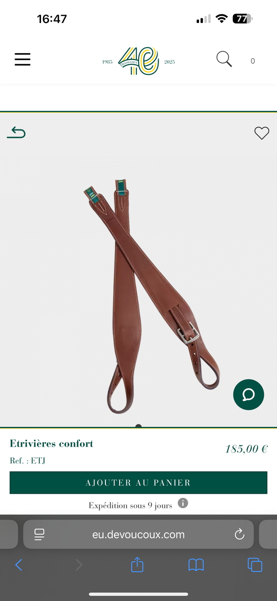 Étrivière simple Devoucoux neuve, couleur havane taille M