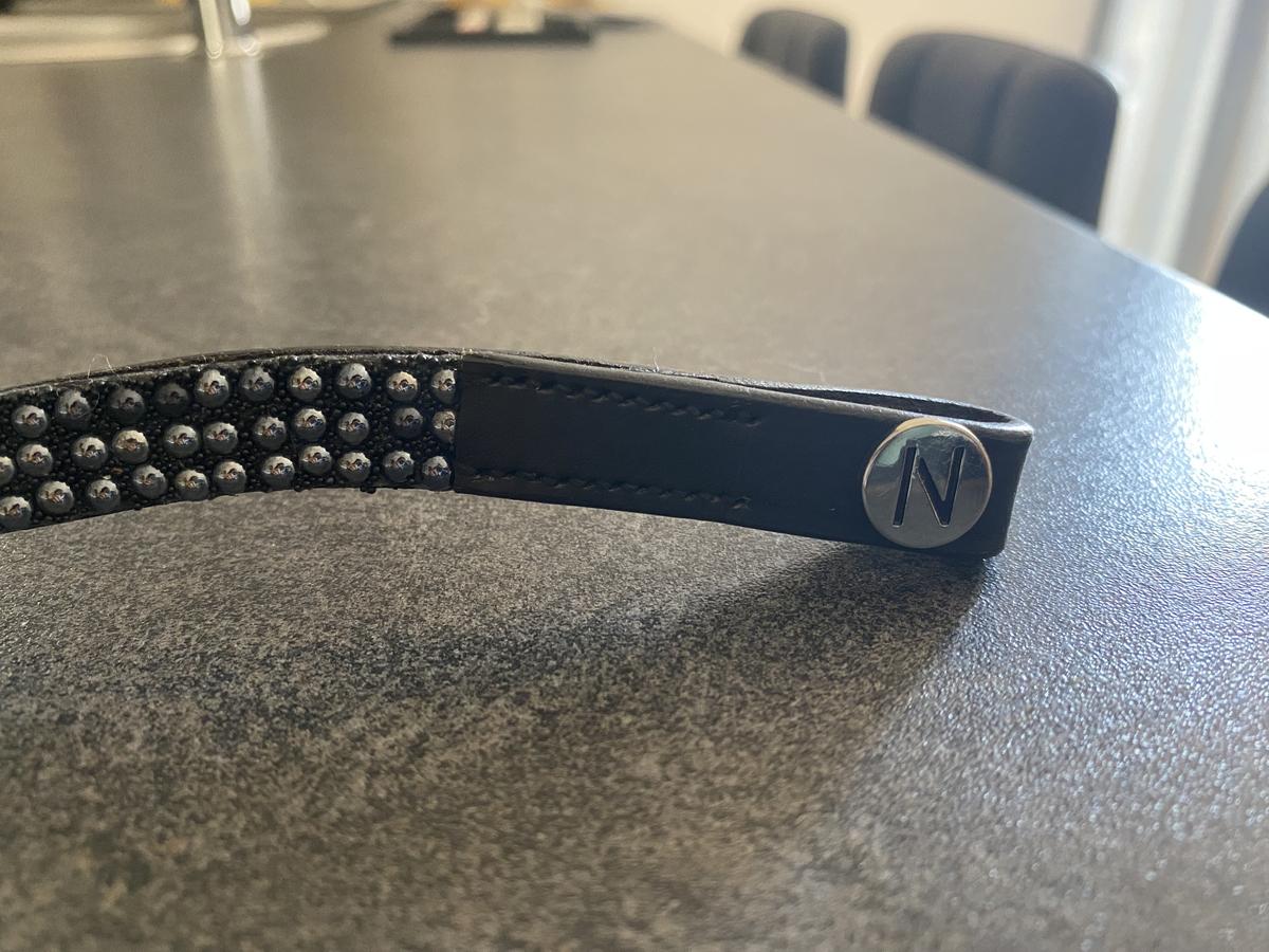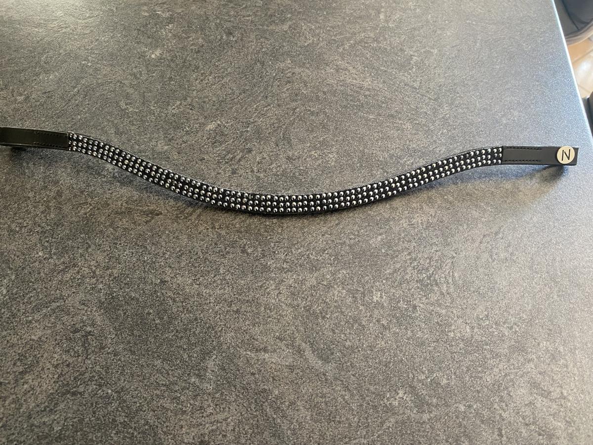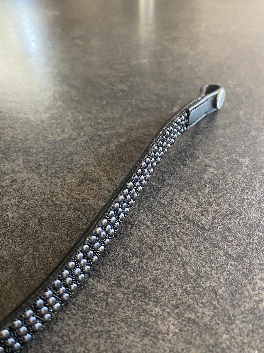 Vends frontal avec paillettes Norton cuir noir taille cheval. Neuf, gagné en concours mais mes cuirs sont marrons.