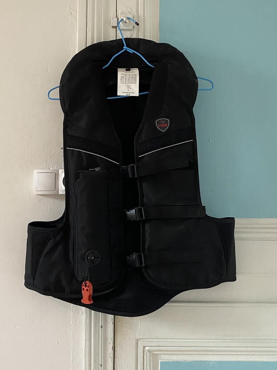Le air bag est en parfait état,il n’a jamais été déclenché et mis que 2/3 fois. Je le vend car j’arrête l’équitation. Il convient parfaitement pour toute les disciplines, pour le cross le gilet classique passe parfaitement en dessous sans gêner.