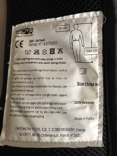 Air Bag gilet de protection Enfant - Ado Taille M