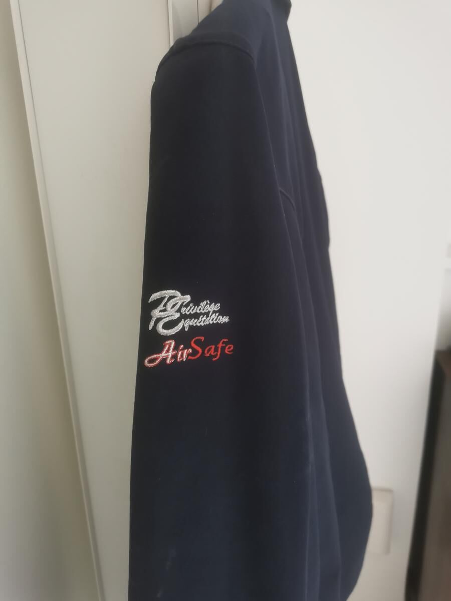 Airbag airsafe avec veste de concours bleu marine taille L en excellent état. privilège équitation, air bag Helite avec cartouches .