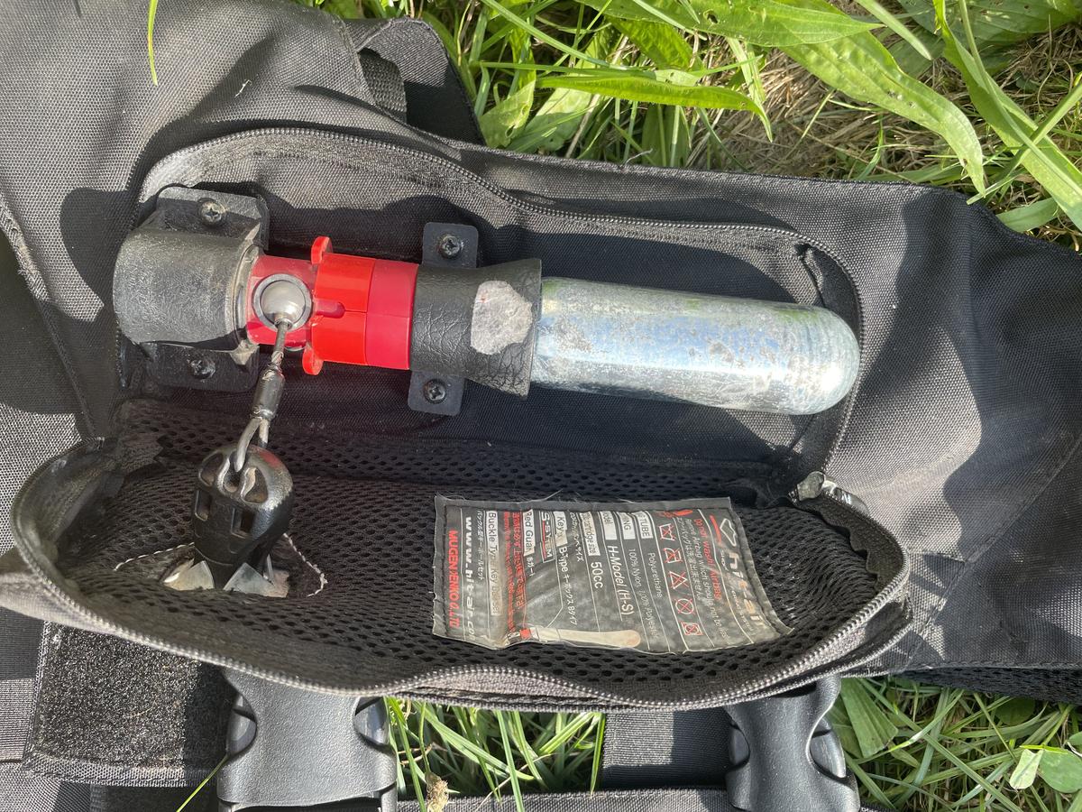 Air bag HIT AIR taille S, parfait état, 50 cc, vendu avec 3 cartouches d’avances.