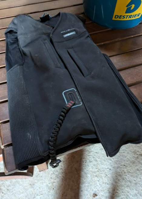 Je vends mon gilet Airbag Segura noir taille XS/S, pour personne mesurant entre 1m58 et 1m64.