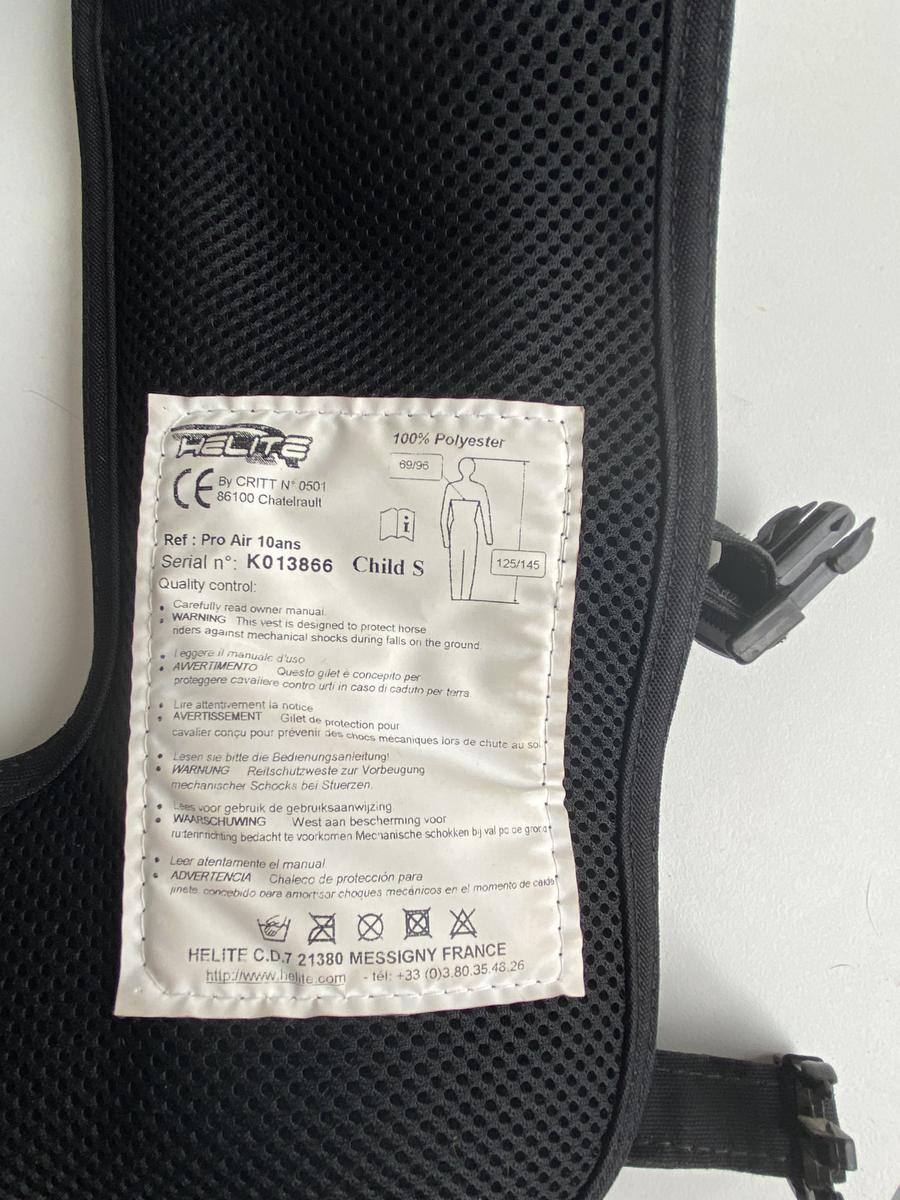Je vends un gilet air bag Helite privilège équitation