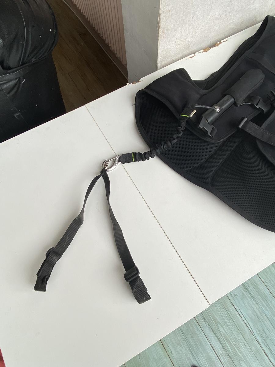 Le lien du gilet à la selle et celui pour l’attacher à la selle