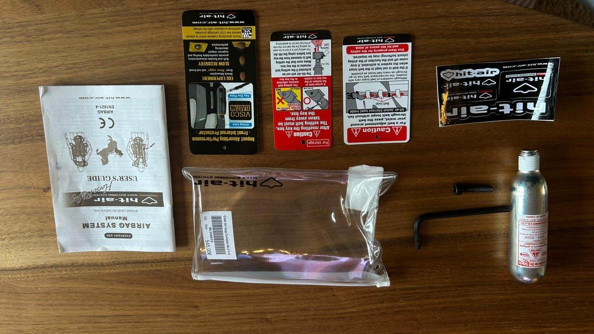 Gilet air bag modèle « Gilet Air bag Complet MLV II H », taille XS. Acheté en mai/juin 2023 environ et porté jusqu’à mars/avril 2024. Je suis tombée 5-6 fois avec, je n’ai eu aucun soucis. Je le vends avec deux cartouches (une intégré dans le gilet et l’autre à côté), ainsi que la pochette rempli (photo 4). Acheté neuf à 545 je le vends à 450.