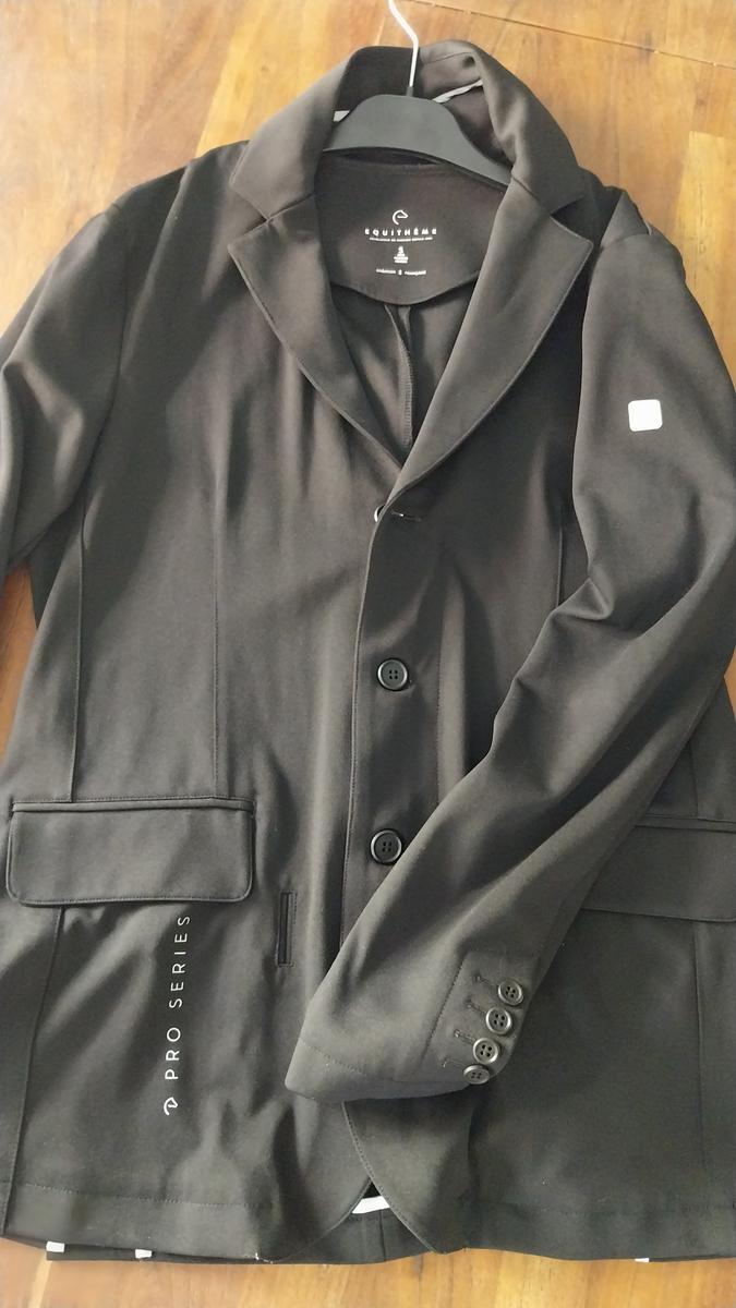 • Veste de concours: modèle homme mais ceintré, matière légère et agréable. Portée deux fois, achetée aux championnats de France 2024. État impeccable. Portée sur la première photo. Valeur neuve 210 euros.