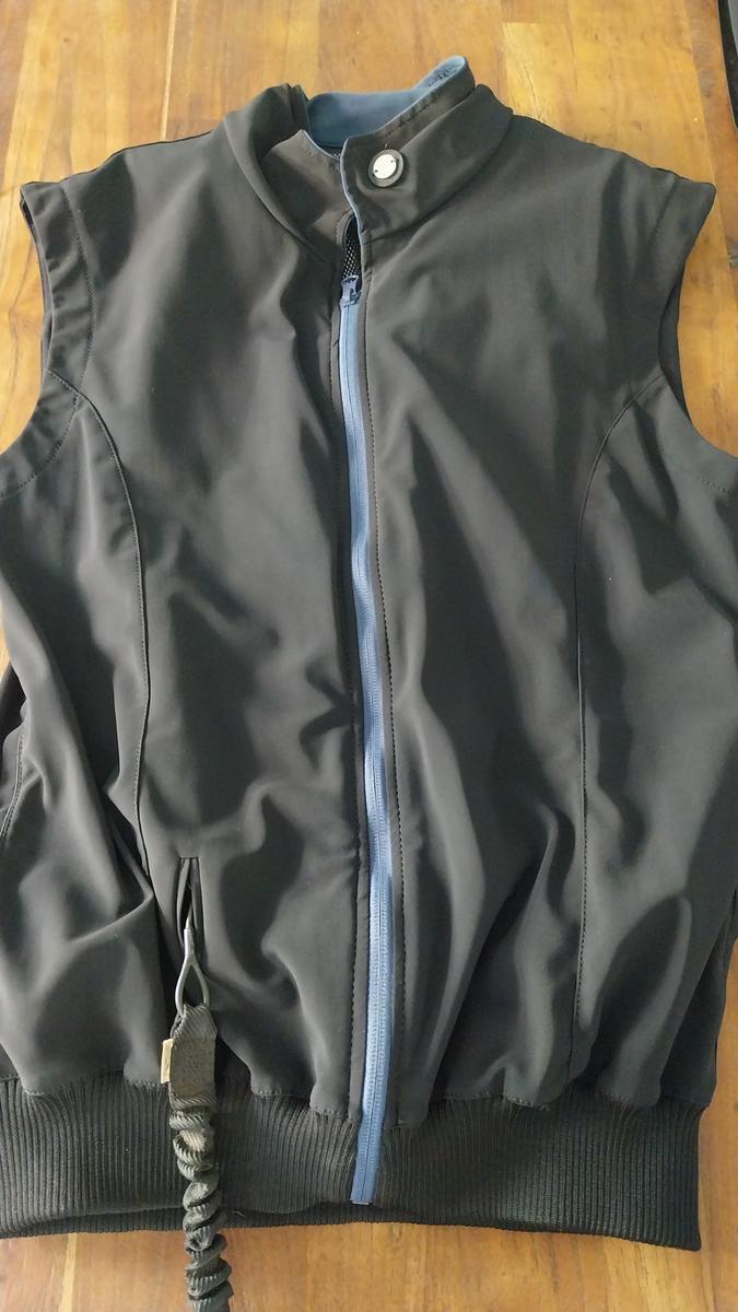 • Veste sans manche: peut être portée quotidiennement et en concours. Matière légère, déperlante. Coloris noir+ bleu.