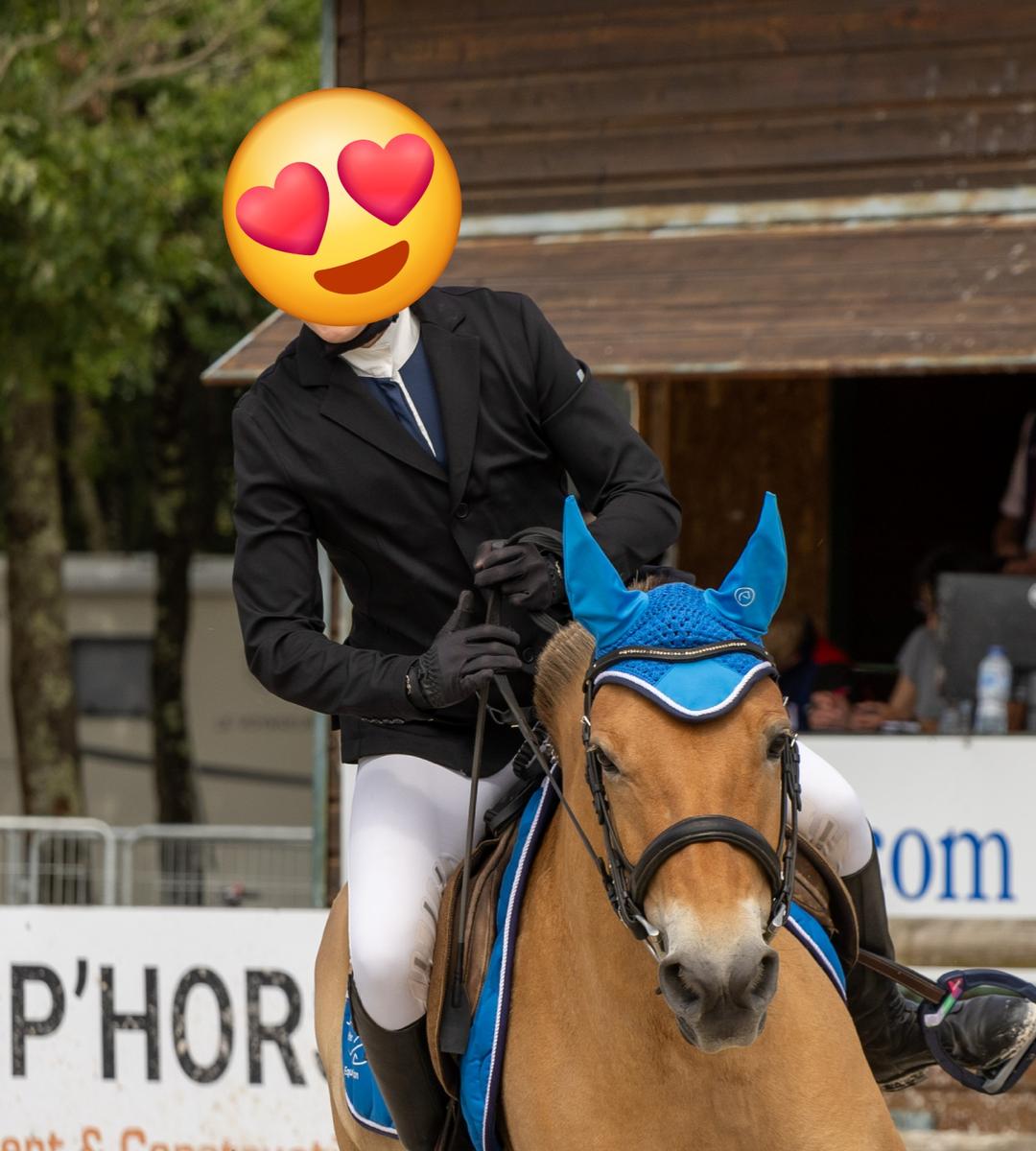 • Veste de concours: modèle homme mais ceintré, matière légère et agréable. Portée deux fois, achetée aux championnats de France 2024. État impeccable. Portée sur la première photo. Valeur neuve 210 euros.