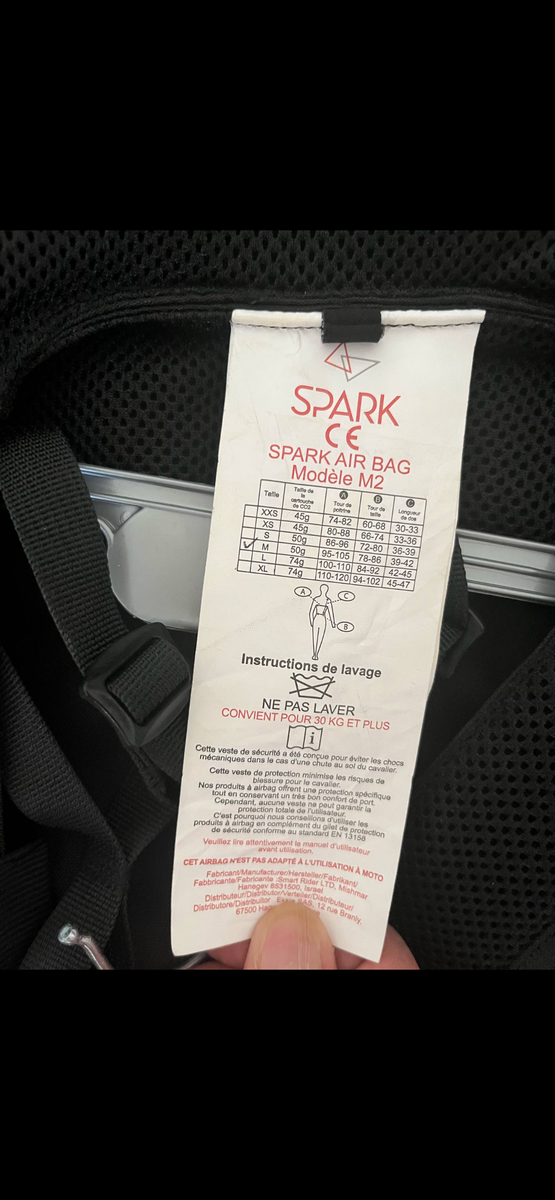 Airbag Spark neuf avec étiquette, jamais utilisé + cartouche 50cc. Taille M.