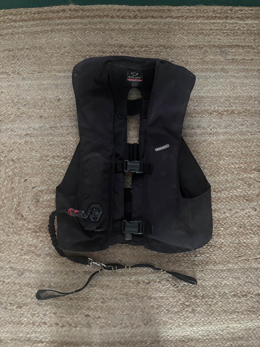 airbag noir taille S modèle complet en très bon état vendu avec une cartouche dedans et les cordons d’attaches sans le kit pour changer la cartouche mais peut se faire facilement avec une vis et une clé