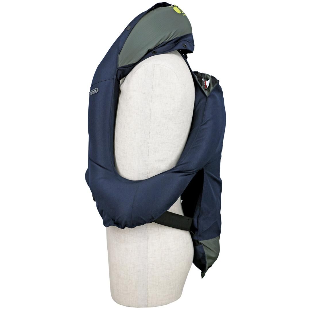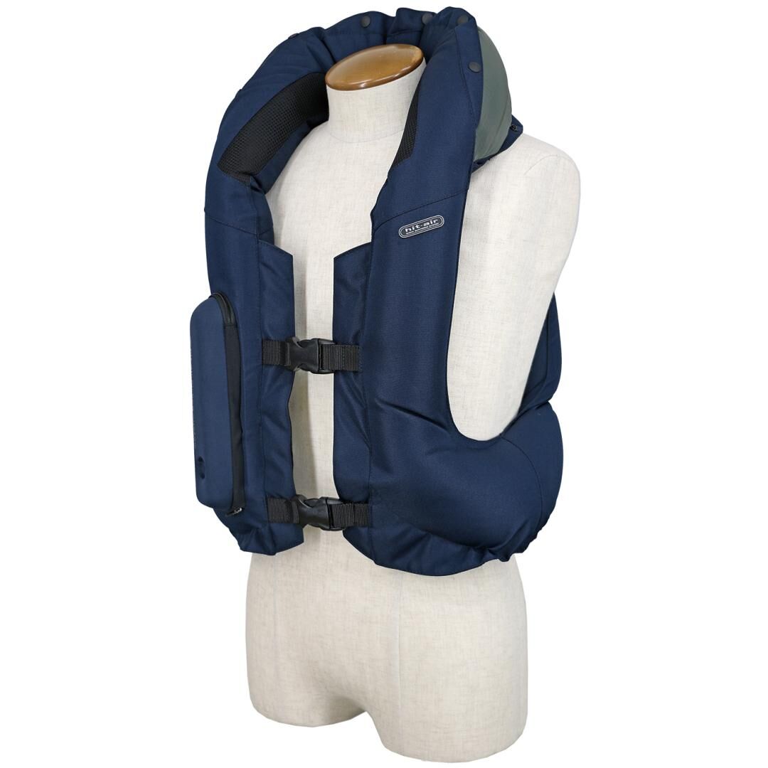 Gilet airbag Complet 2 taille S de couleur navy reconditionné par notre équipe japonaise. Ce gilet airbag a uniquement été utilisé durant certains shooting photo et sur des salons à des fins d’exposition.