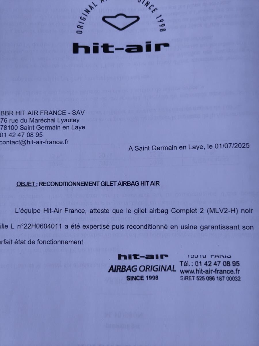 Reconditionné par Hit Air (certificat fourni avec le gilet).