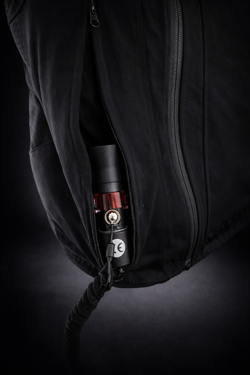 Votre airbag est livré prêt à l’emploi. Il vous suffit de visser une cartouche compatible (avec la plupart des marques du marché comme Helite ou Hit-Air), en 50 cc pour les tailles 3XS à XS et 60 cc pour les tailles S à XL.