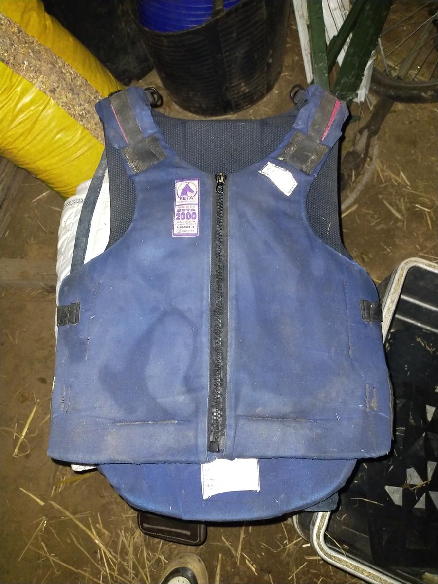 Le tissu est un peu tâche mais bon état général. Le scratch dans le dos et la fermeture éclair fonctionnent sans problème.