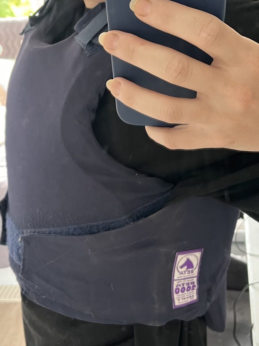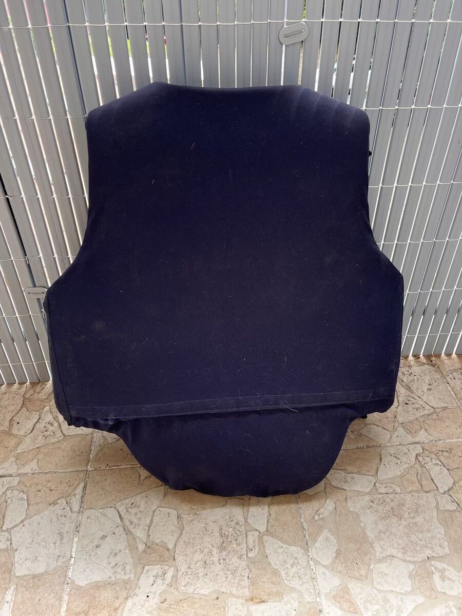 Le gilet devient flexible lorsque chauffé avec la chaleur du corps, ce qui le rend confortable pour monter car peut être ajusté. La coque descend bien dans le dos et permet de protéger les lombaires.