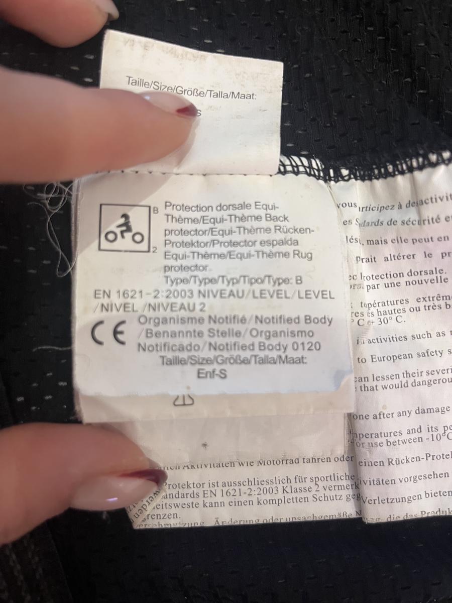 Convient pour un enfant de 4 ans à 8 ans. La fermeture éclair est encore en très bon état. Le gilet est en très bon état également. Très pratique car protège bien et reste léger. Ne gêne pas le cavalier.