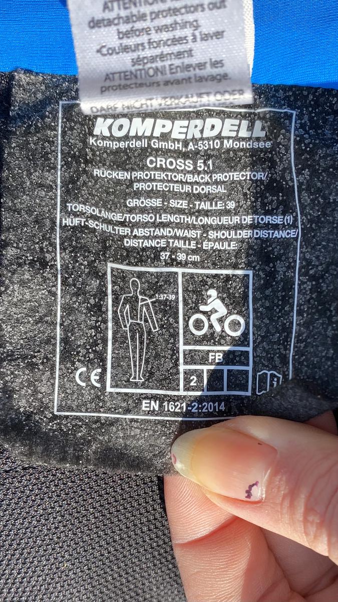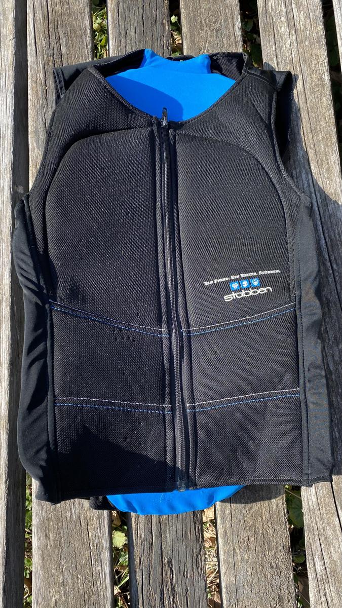 Protection dorsale pour cross ou saut, marque: stübben, couleur: bleu et noir, taille: S (protection de la colonne vertébrale de maximum 54cm), caractéristiques: protection à 360 degrés, thermo réglable et se moule à la morphologie du cavalier, pas mal utilisé mais toujours en bon état et efficace