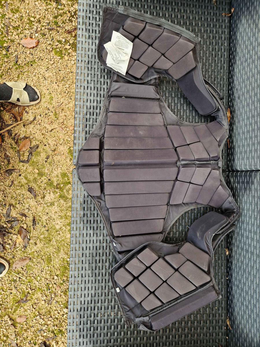 protection portée plusieurs fois, elle a eu peu de chute. Elle est en bon état et peu encore être portée un moment.