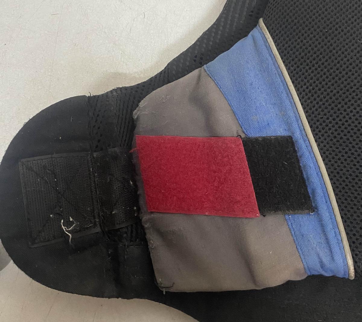 Porter très peu de fois étant jeune, n’a subit aucune chute mais a été frotter sur le bas sûrement à un mur ou sur la selle donc abîmé légèrement mais ne gêne en rien! Les velcros sont parfait et tiennes toujours aussi bien !