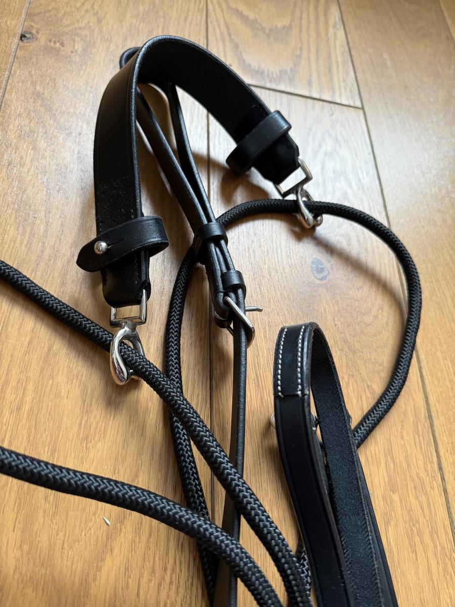Gogue noir à poulies + rênes de gogue - taille cheval - état neuf