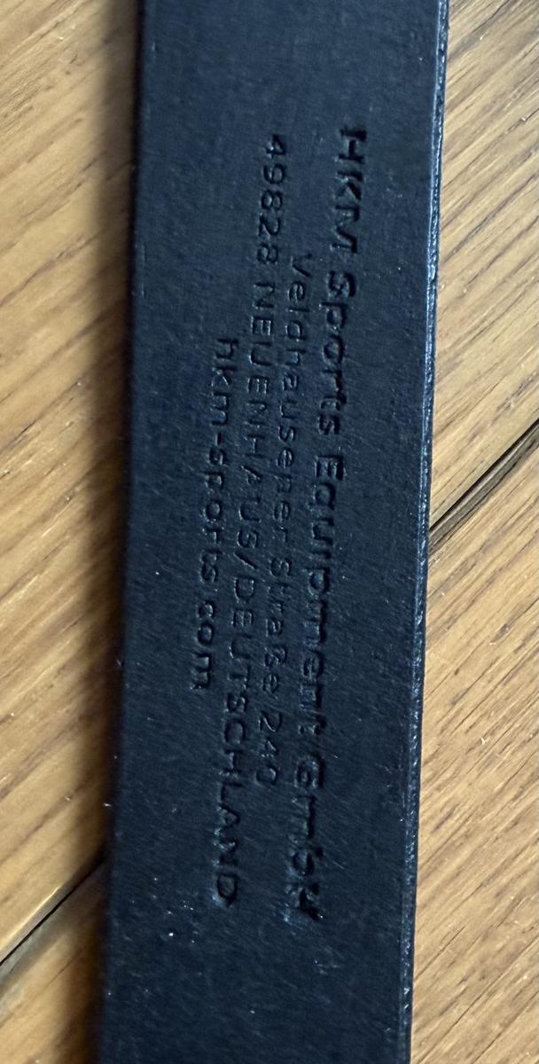 Gogue en cuir noir de la marque HKM, taille cheval, avec système à poulie et rênes de gogue complètes pour le transformer facilement en gogue commandé.