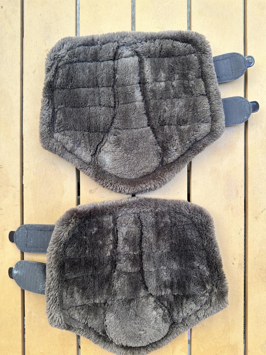 Guêtres Havana Brown, taille M, en moumoute marron, peu portées mais présentent des rayures.