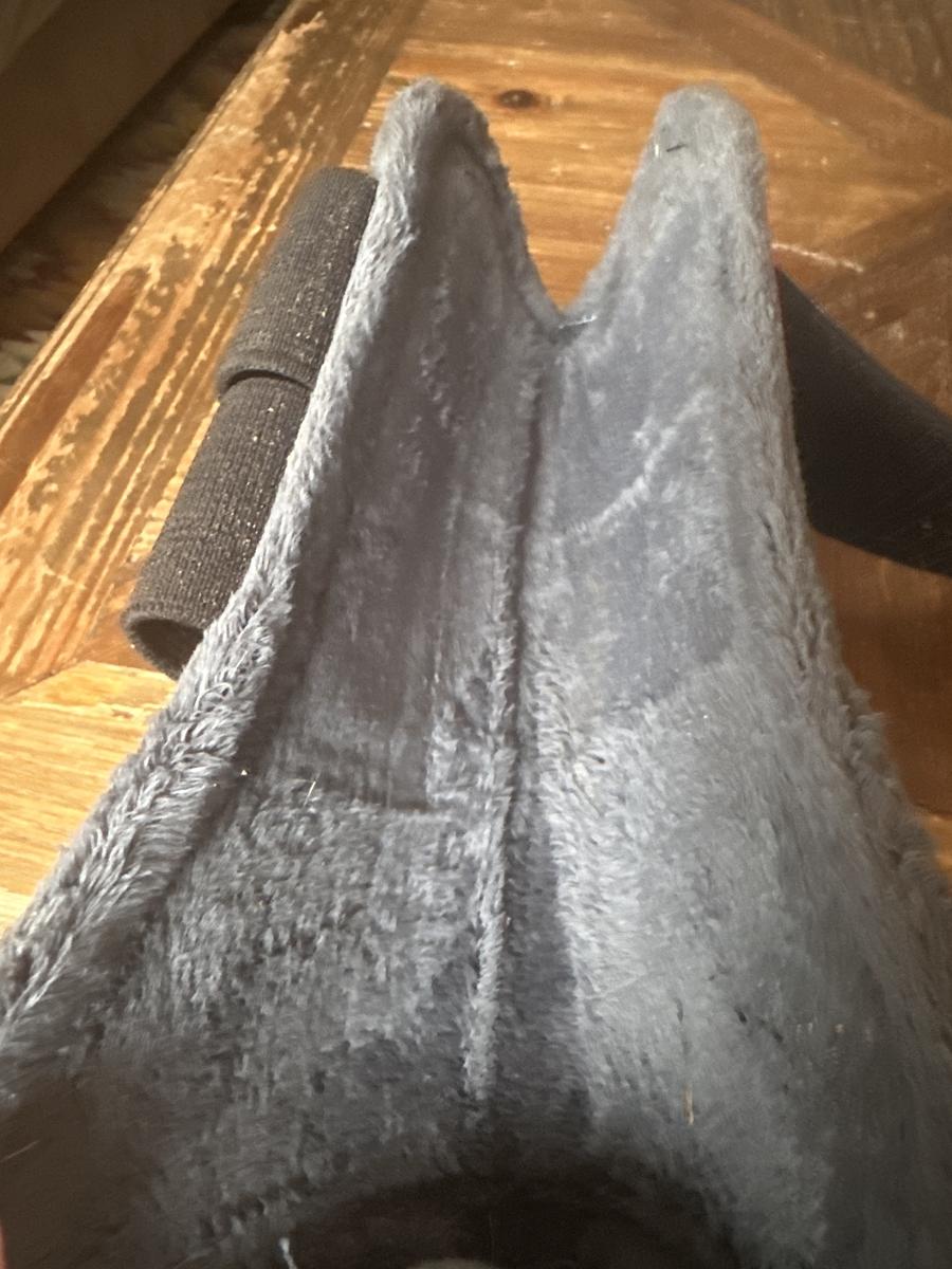 Guettres rouges taille cheval avec intérieur en moumoute grise.