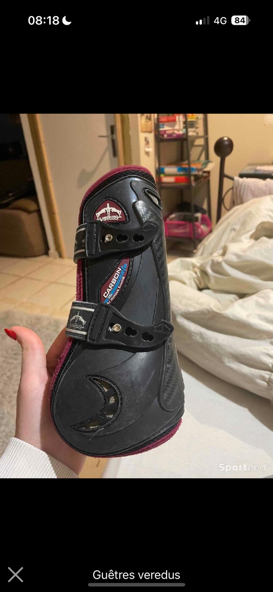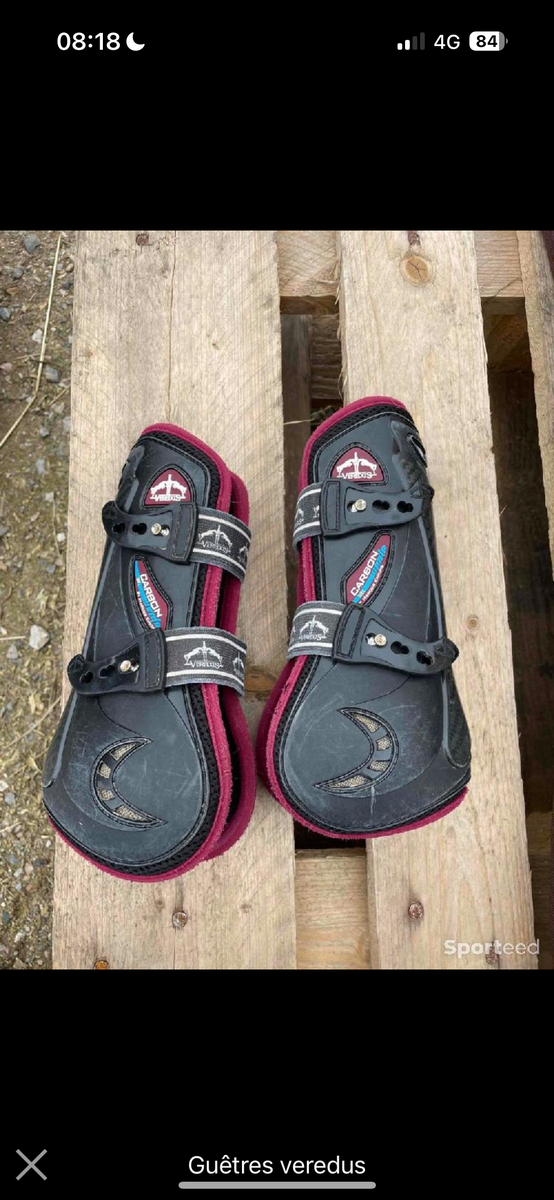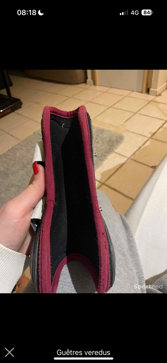 Guêtres veredus noir et bordeaux en gel carbone. Un peu abîmé à force d’être mise mais bon état malgré tout. Achetée 210€ neuves taille M