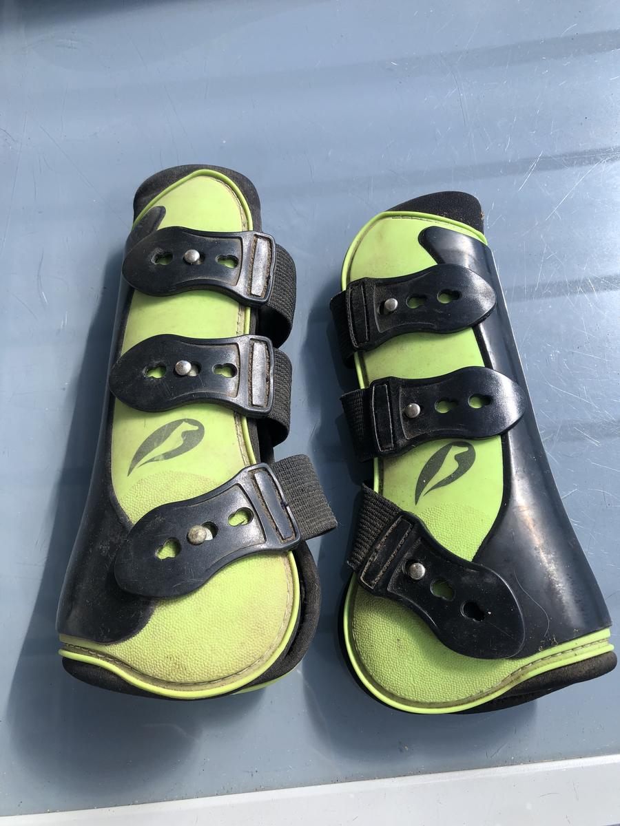 Guêtres vertes pomme, avec Néoprène et clips, en bon état quelques petits défauts voir photo