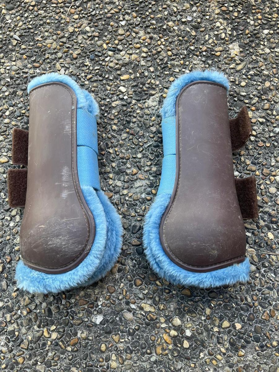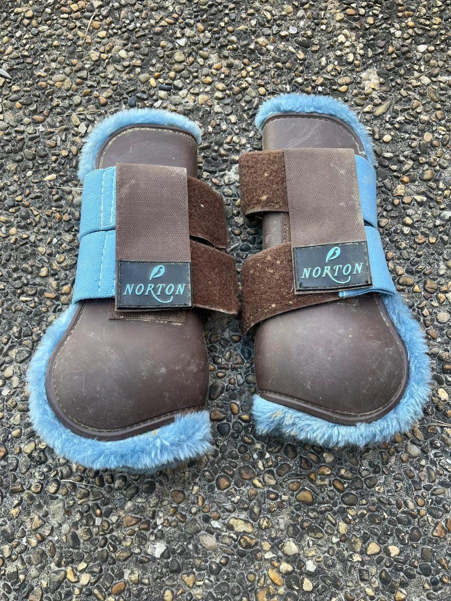 A vendre guêtres norton taille cheval bleu/marron (intérieur en moumoute bleue). Bon état, quelques griffures à l'intérieur mais aucun trou, moumoute en bon état, scratchs en très bon état.