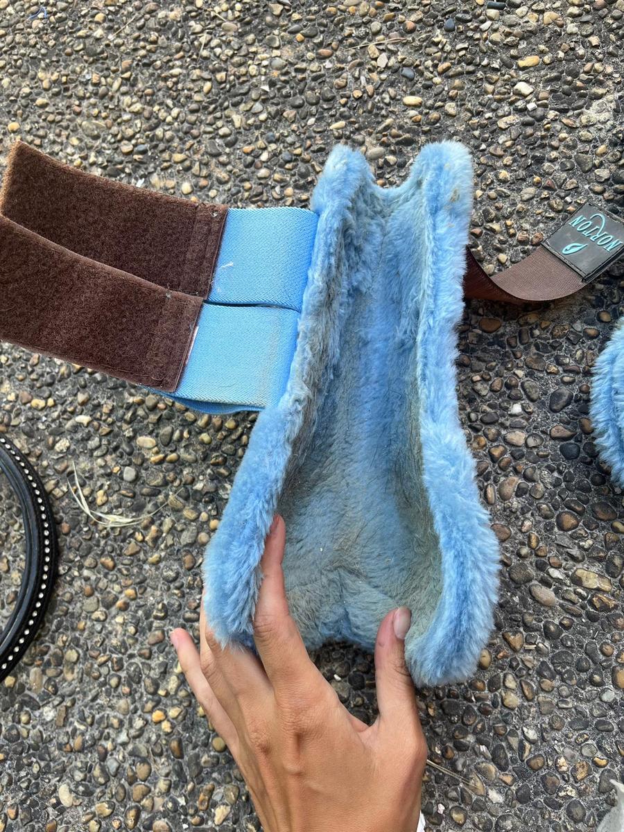 A vendre guêtres norton taille cheval bleu/marron (intérieur en moumoute bleue). Bon état, quelques griffures à l'intérieur mais aucun trou, moumoute en bon état, scratchs en très bon état.
