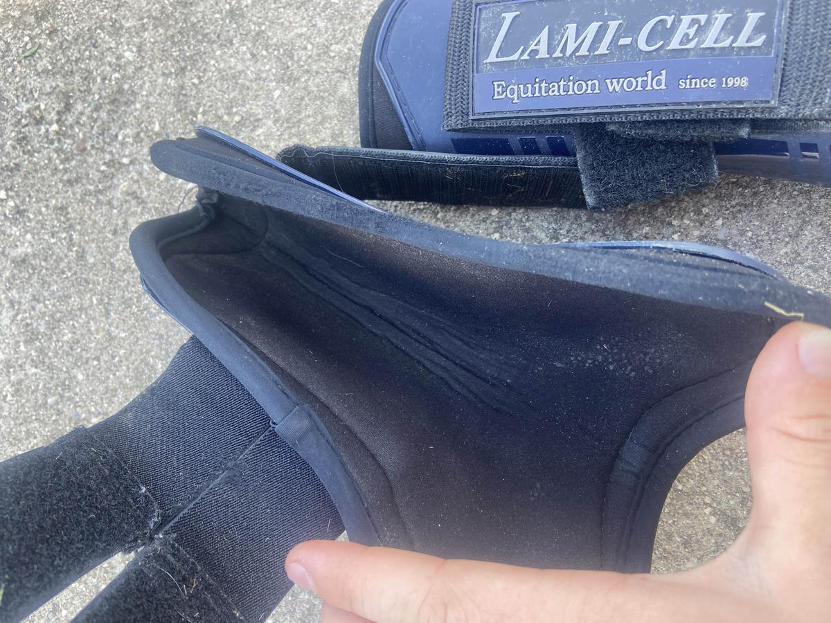 Guêtres Lami-Cell bleu marine en bon état, un petit fil s’enlève en haut de la guêtres mais rien d’urgent!