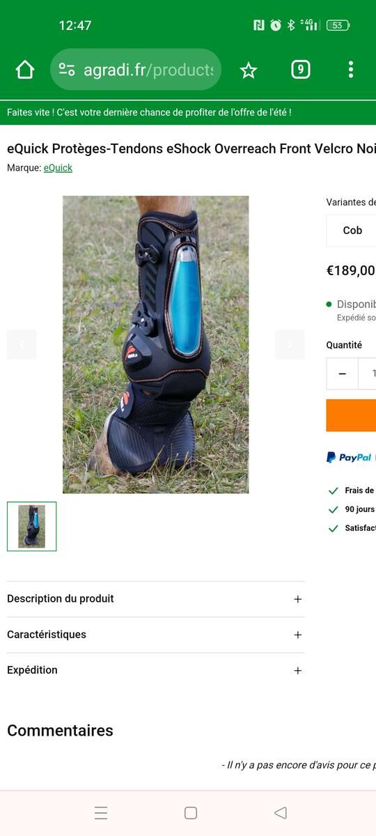 Vends eQuick Protèges-Tendons eShock Overreach Front Velcro en couleur noire.