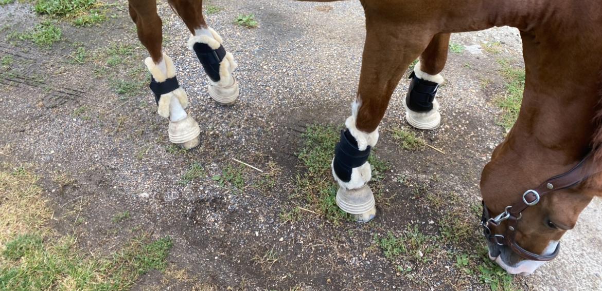 Guêtres et protèges boulets coqués cuir noir doublés moumoutes