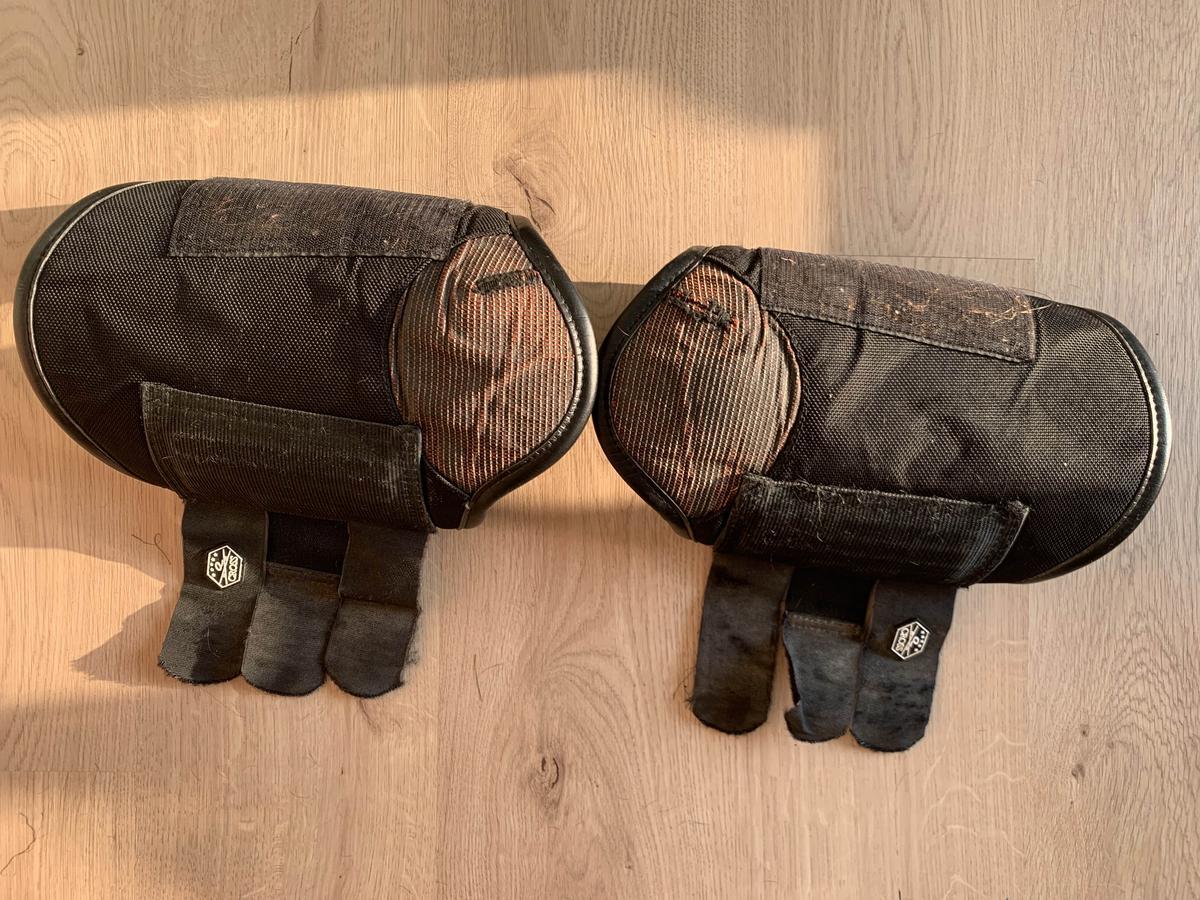 Guêtre de cross postérieurs taille cheval, convient à ma jument de 1m63 donc taille bien. Matière souple donc s’ajuste top, scratch qui tiennent bien, ne glissent jamais.