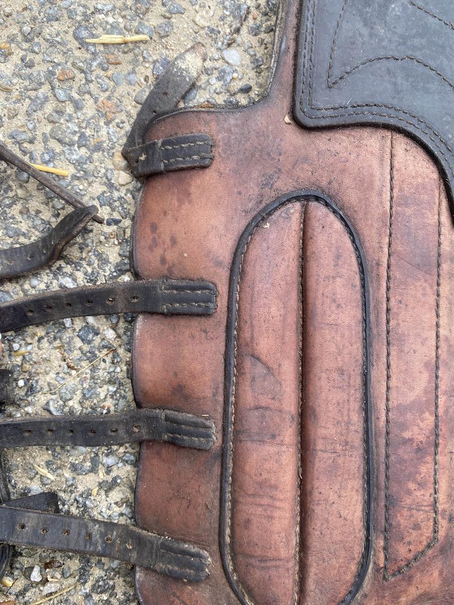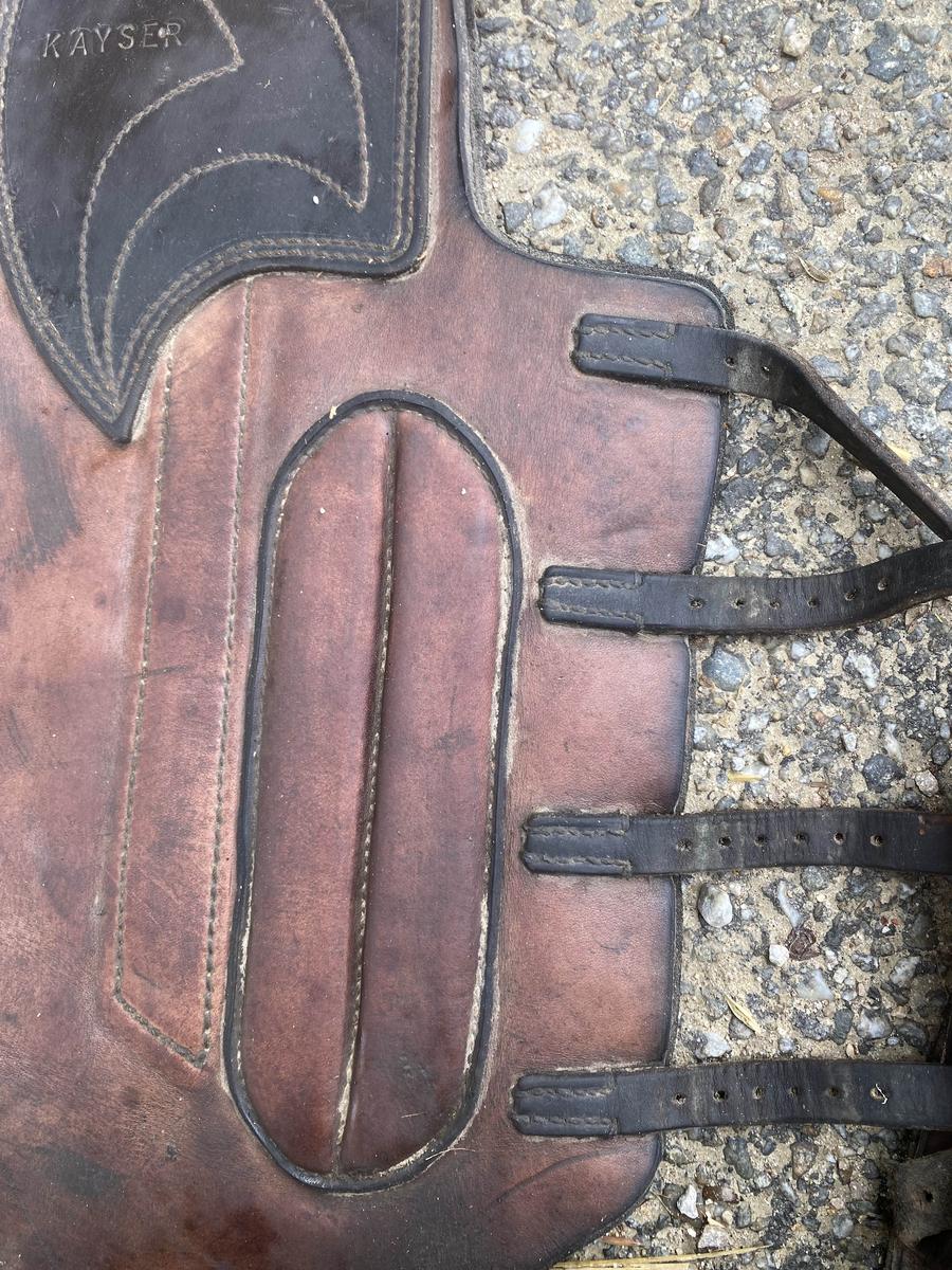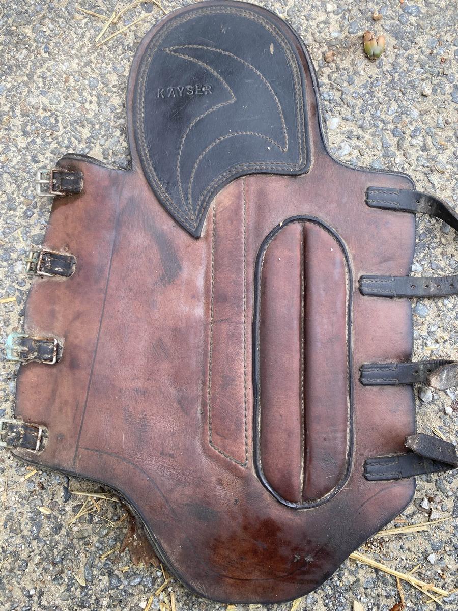 Guêtre de cross en cuir marron, taille cheval et marque KAYSER, très bonne protections, en superbe état.
