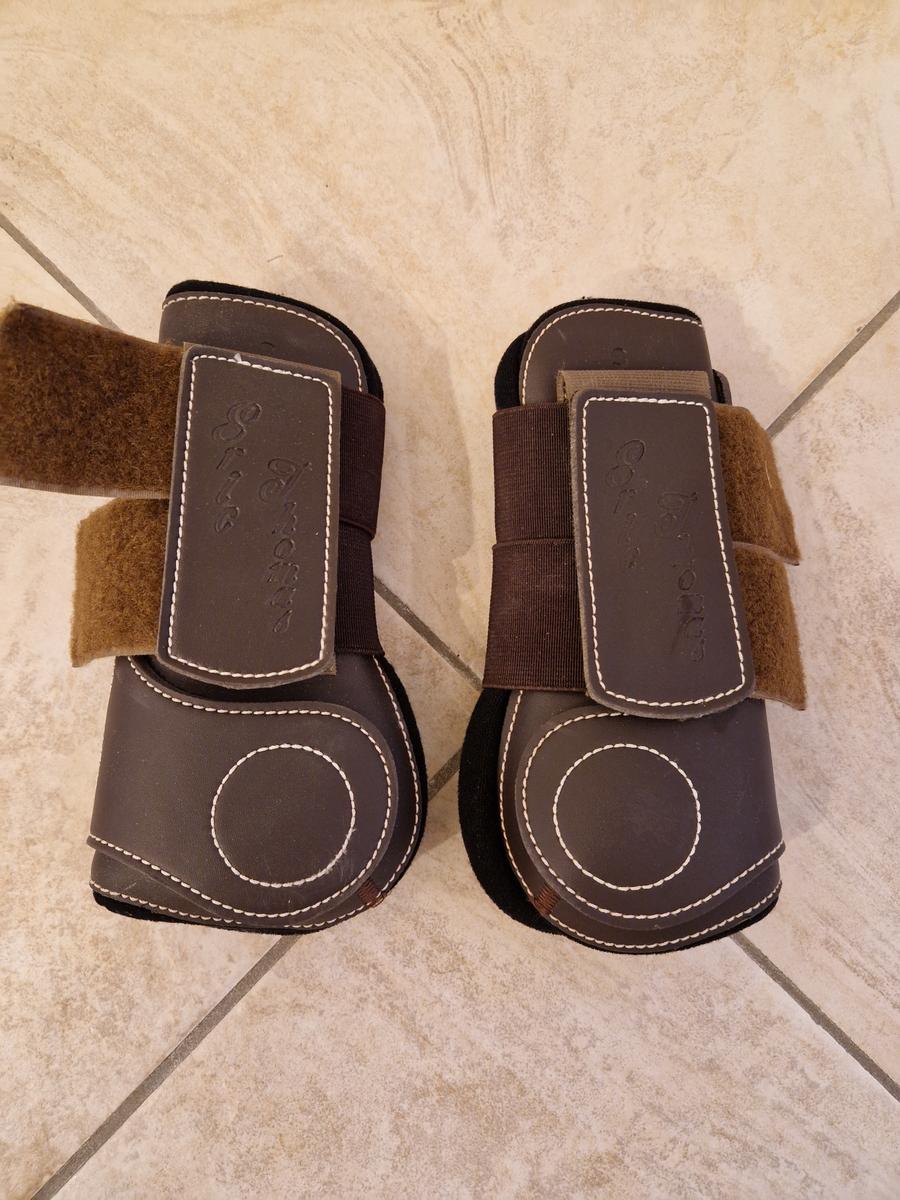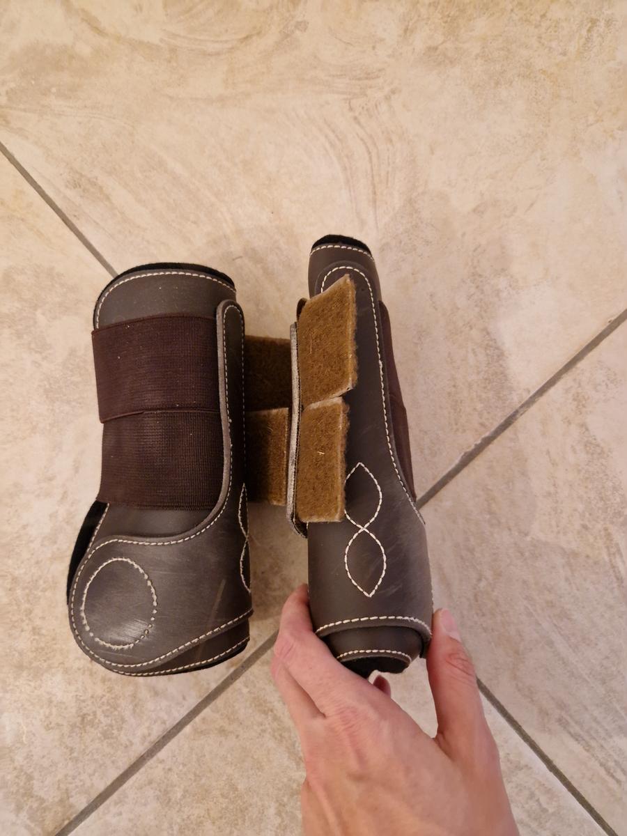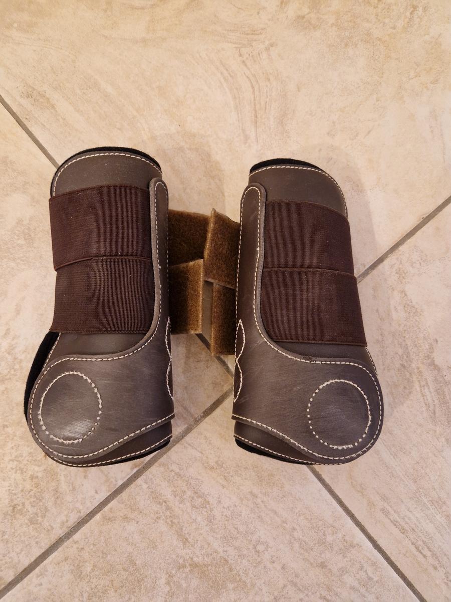 Je vends une paire de guêtres avant en simili cuir avec détails surpiqués blanc. Elles sont en taille COB. Les guêtres n'ont pratiquement pas servi et sont en état excellent.