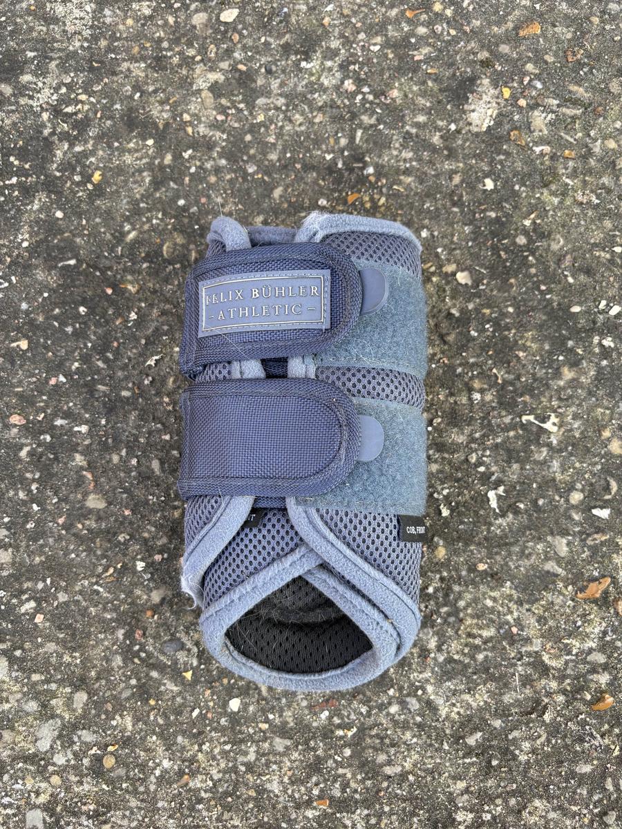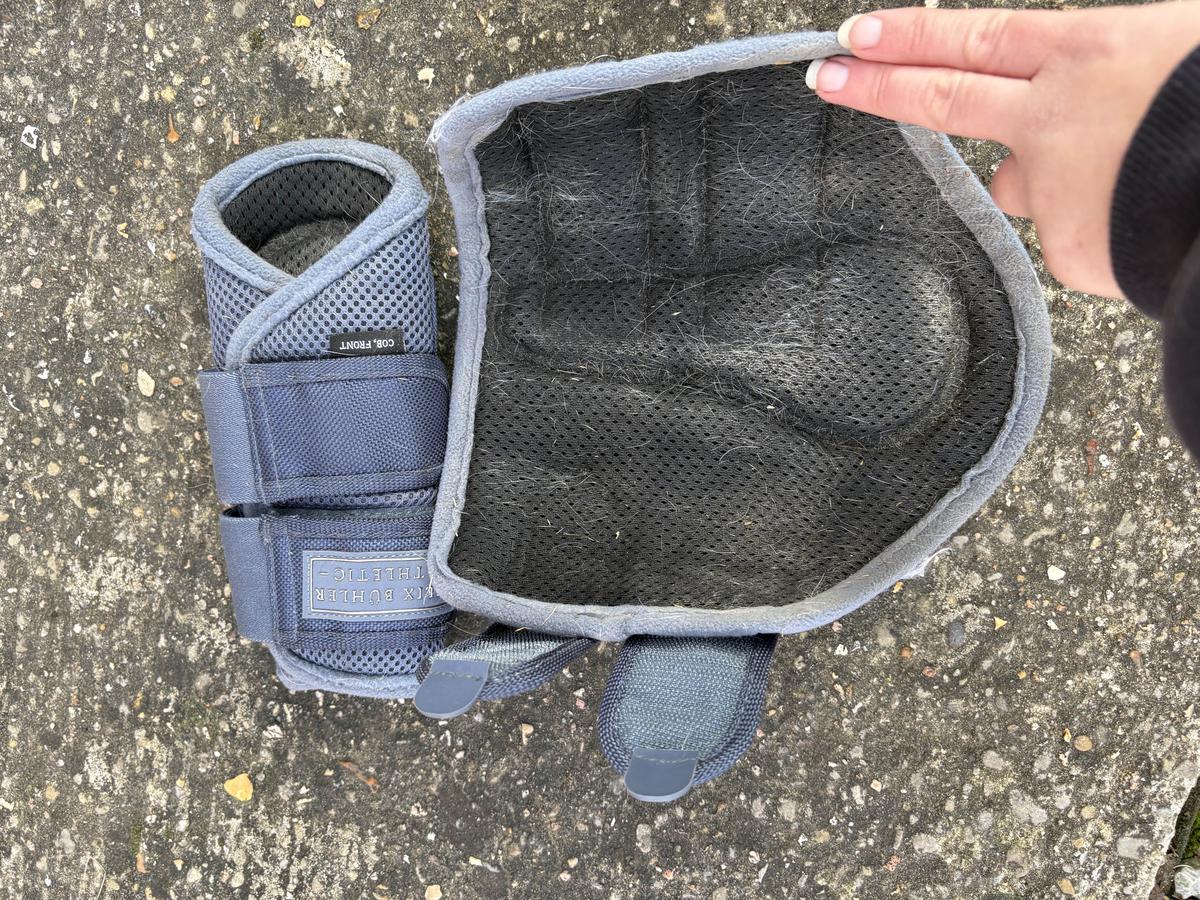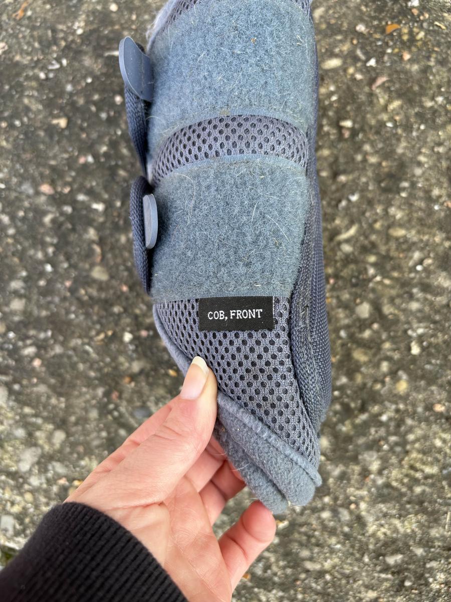 Guêtres antérieures en mesh, de couleur bleues, taille cob, portées mais en très bon état.