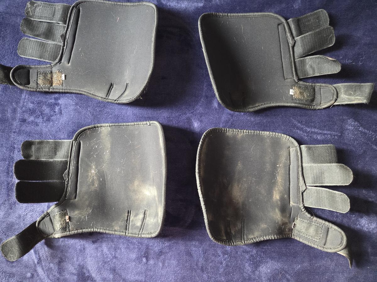 2 guêtres taille M pour les antérieurs et 2 guêtres taille L pour les postérieurs (porté par un cheval de 1m60)
