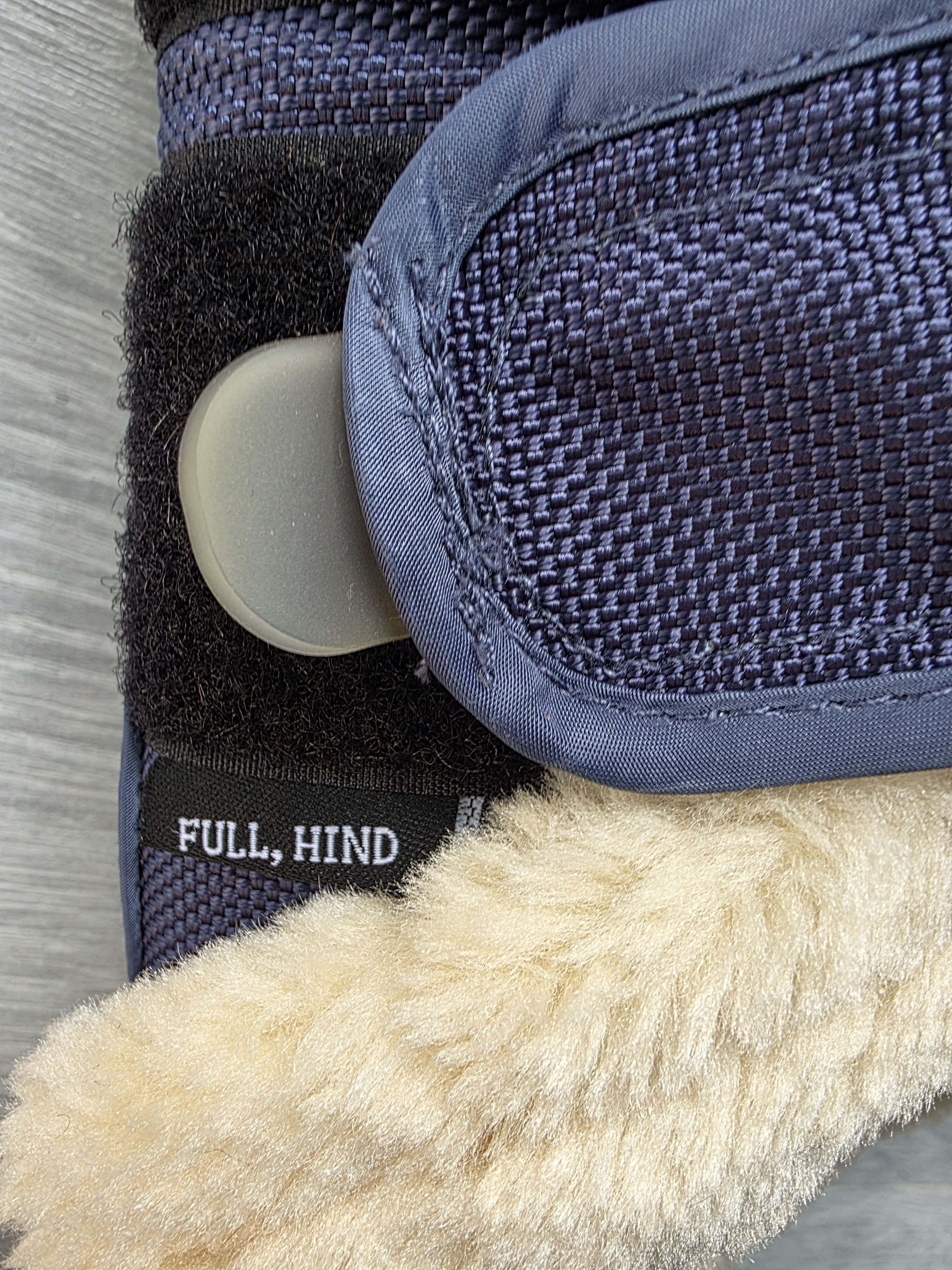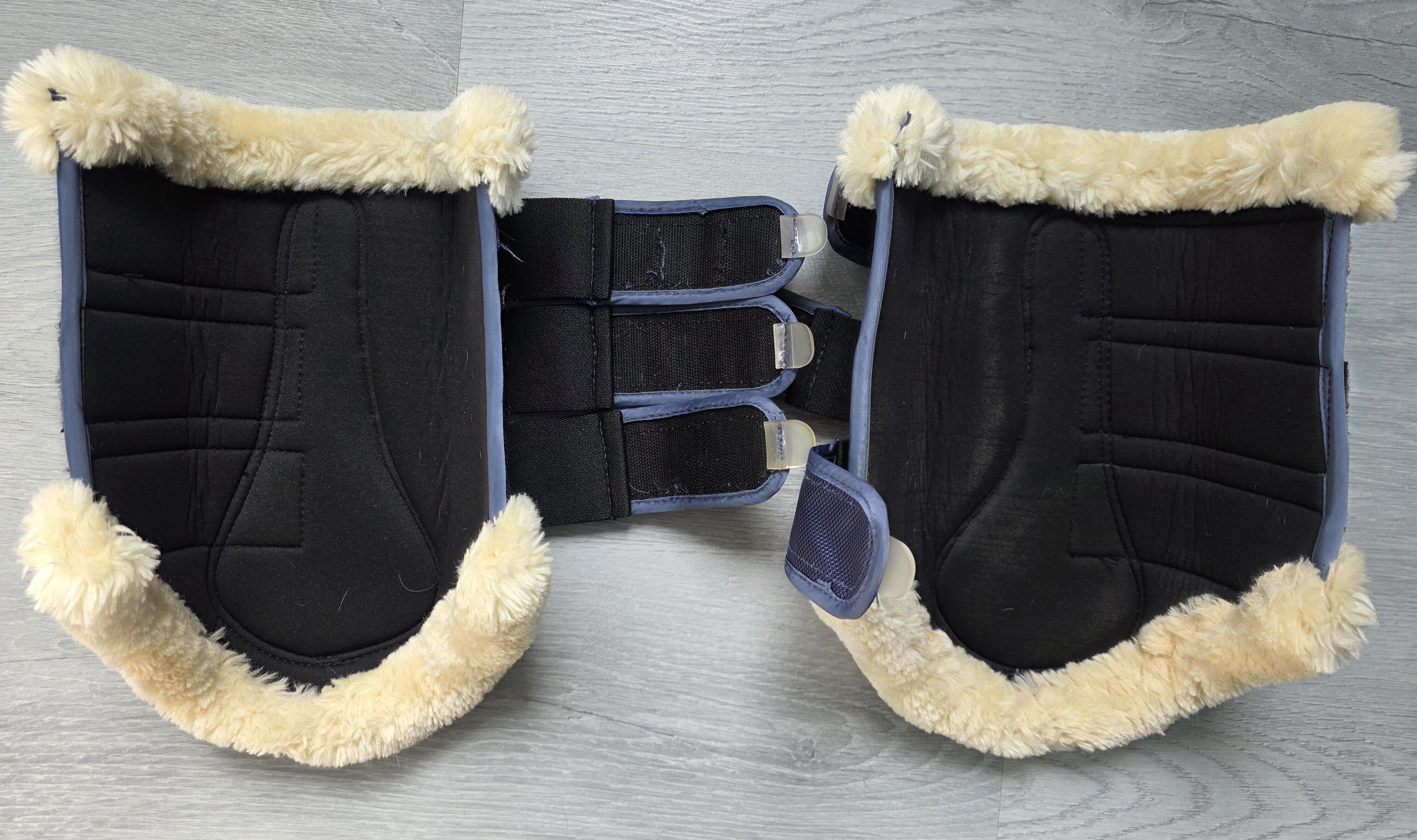 Guêtres de dressage marque: Felix Bühler en polaire Teddy Essential, taille: Cheval (postérieurs) couleur: Bleu Capri. Quasi neuve.