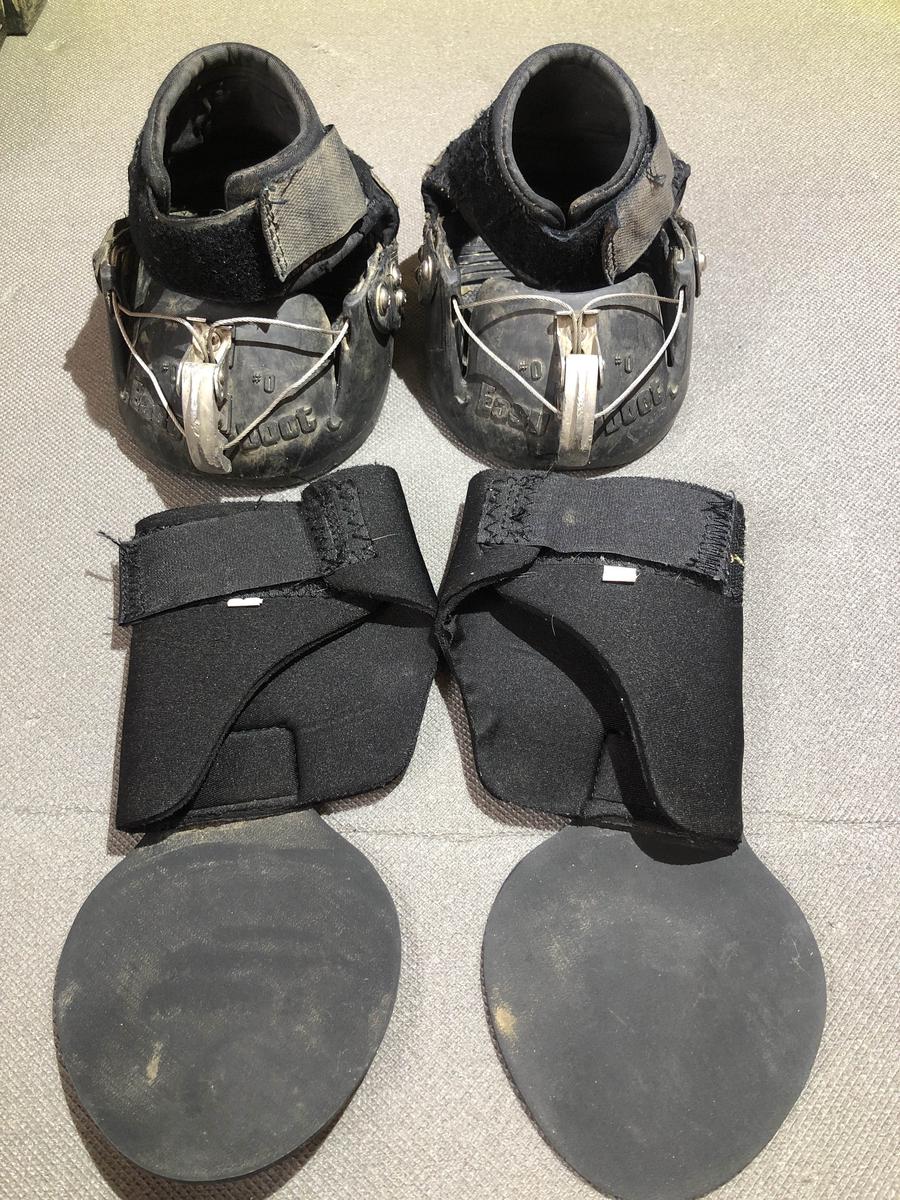 Les chaussures sont abîmées, la semelle est cependant intacte, il faudra certainement prévoir de changer le câble de serrage. D’où le petit prix.