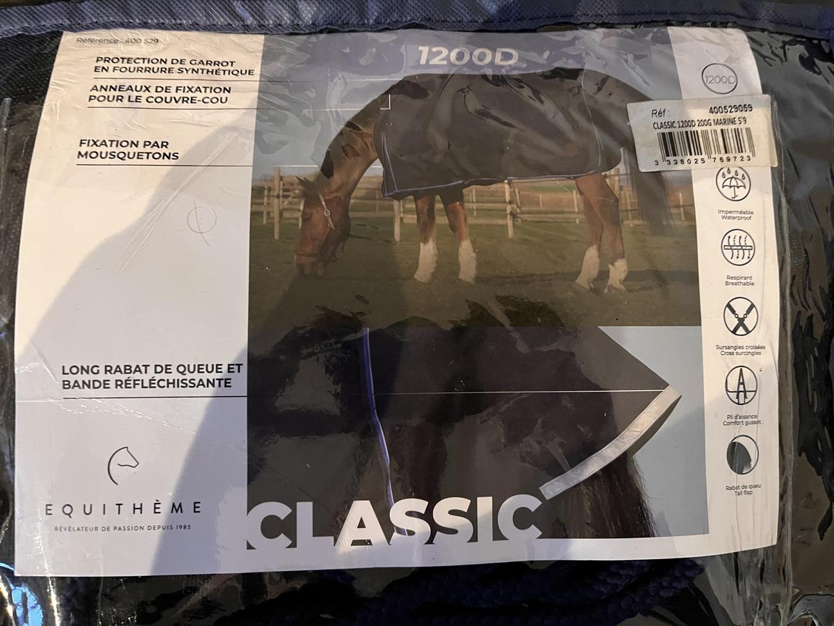 Couverture equithème imperméable bleu marine NEUVE, 200g, 1200 D, T125.