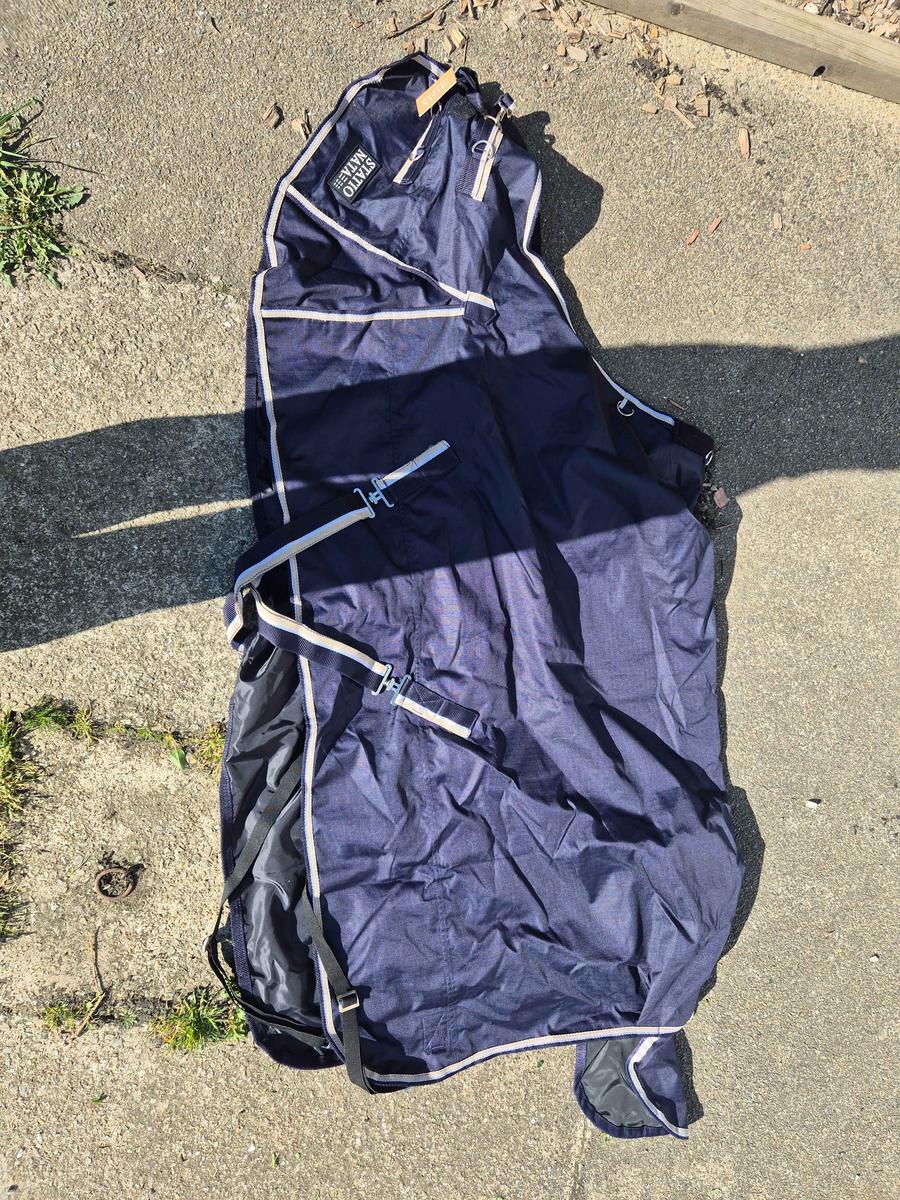 Je mets en vente ma couverture Stationata 0gr taille 125cm imperméable, jamais mise (encore étiquettée), ainsi que le couvre cou que j’ai acheté en même temps, de la marque Horse&Go, 0gr, encore étiquetté. 🏷