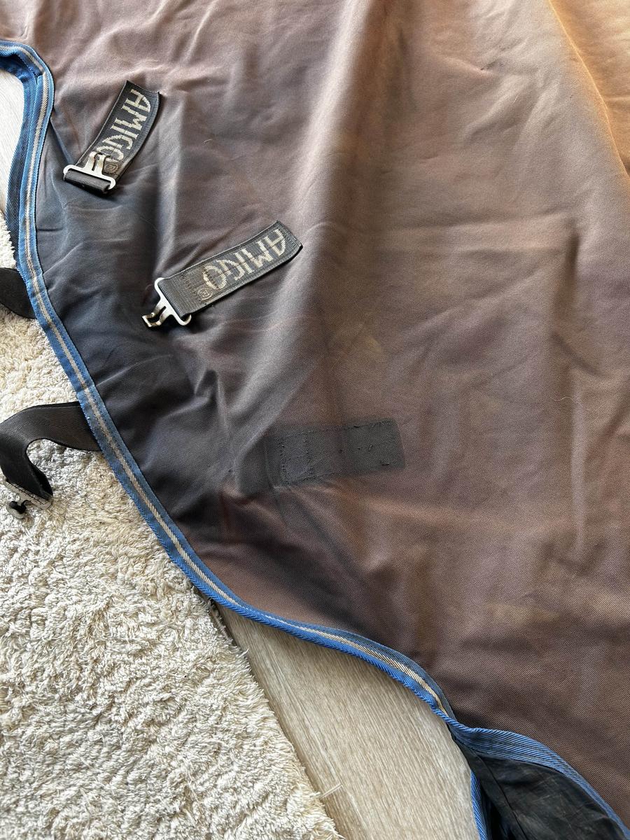 Couverture décolorée mais toujours utilisable en taille 155 avec couvre-cou.
