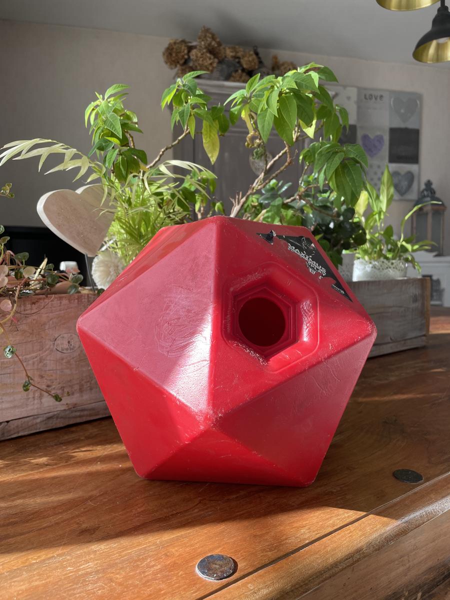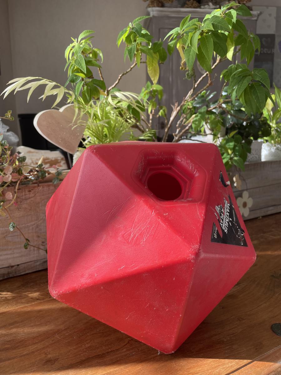 Jouet pour cheval, boule on l’on met des friandises, le cheval s’amuse et s’occupe.