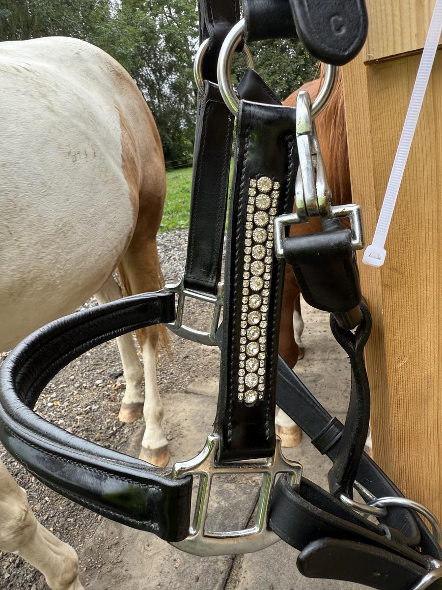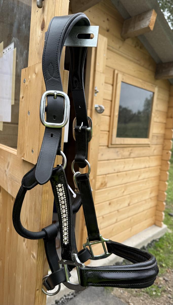 Licol en cuir noir avec strass (vendu avec strass de rechange)