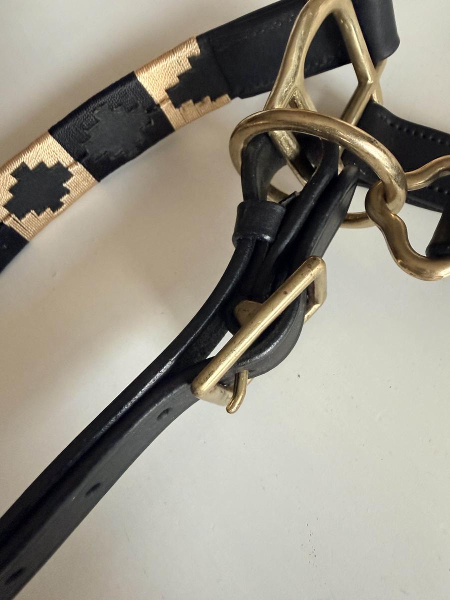 [ES] Cabezada de cuero artesanal hecha a mano. Herrajes de Acero Inoxidable y detalles en hilo dorado. Talla Full. Nueva a estrenar.