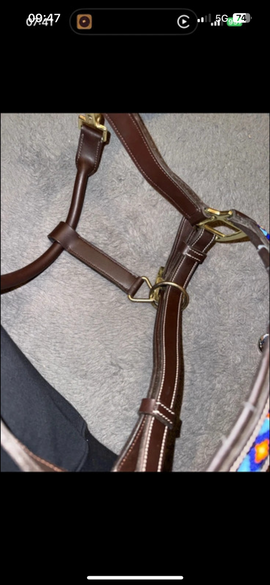 Licol Kentucky pearl en taille COB il a quelques défaut sur la muserolle mais ne se voit pas porté et n’empêchent pas l’utilisation