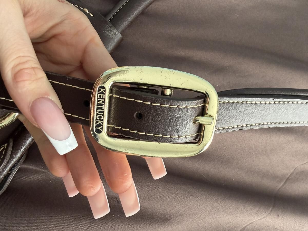 licol en cuir marron, avec des cordes. .